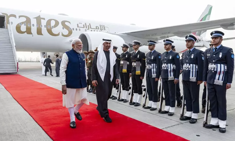 യു.എ.ഇ പ്രസിഡന്‍റ് ഇന്ത്യയിൽ; വിമാനത്താവളത്തിൽ നേരിട്ടെത്തി സ്വീകരിച്ച് പ്രധാനമന്ത്രി മോദി